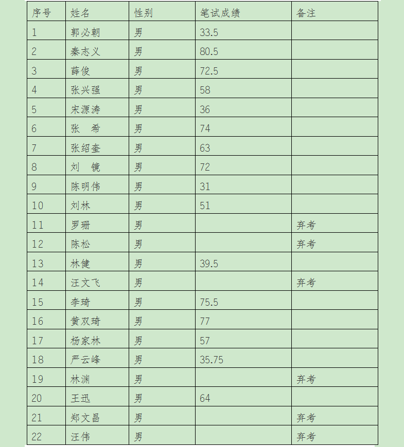 根據(jù)《昭通市煤炭工業(yè)局公開招聘省屬企業(yè)在昭通煤礦駐礦安監(jiān)員通告》相關(guān)規(guī)定,昭通市煤炭工業(yè)局公開招聘省屬企業(yè)在昭通煤礦駐礦安監(jiān)員筆試閱卷、復(fù)核工作已經(jīng)結(jié)束,現(xiàn)將考生筆試成績、進(jìn)入面試人員名單和面試相關(guān)事項(xiàng)通告如下。