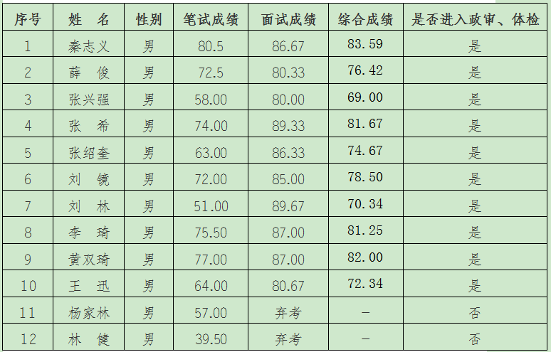 根據(jù)《昭通市煤炭工業(yè)局公開招聘省屬企業(yè)在昭通煤礦駐礦安監(jiān)員通告》相關(guān)規(guī)定,昭通市煤炭工業(yè)局公開招聘省屬企業(yè)在昭通煤礦駐礦安監(jiān)員筆試、面試工作已經(jīng)結(jié)束,現(xiàn)將考生筆試面試綜合成績及體檢相關(guān)事項(xiàng)通告如下。