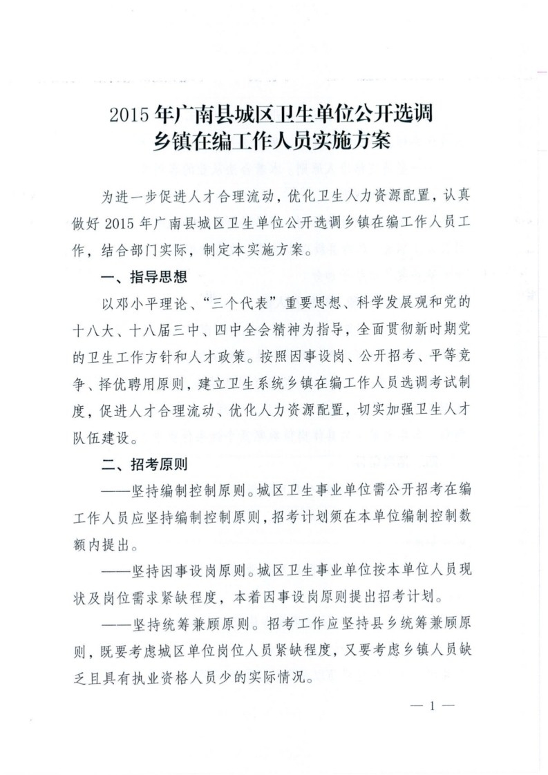 2015年廣南縣城區(qū)衛(wèi)生單位選調(diào)鄉(xiāng)鎮(zhèn)在編人員實(shí)施方案