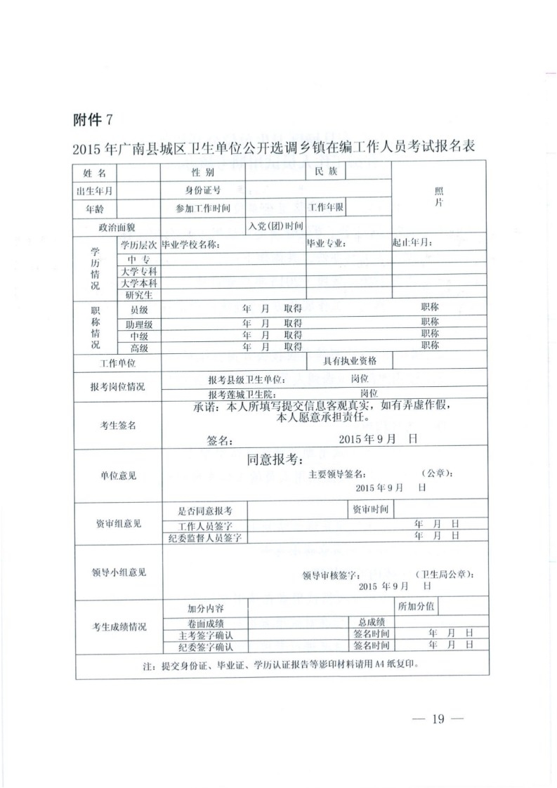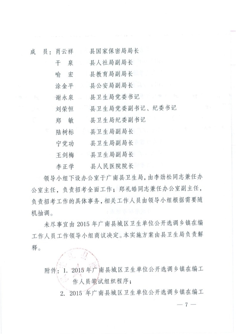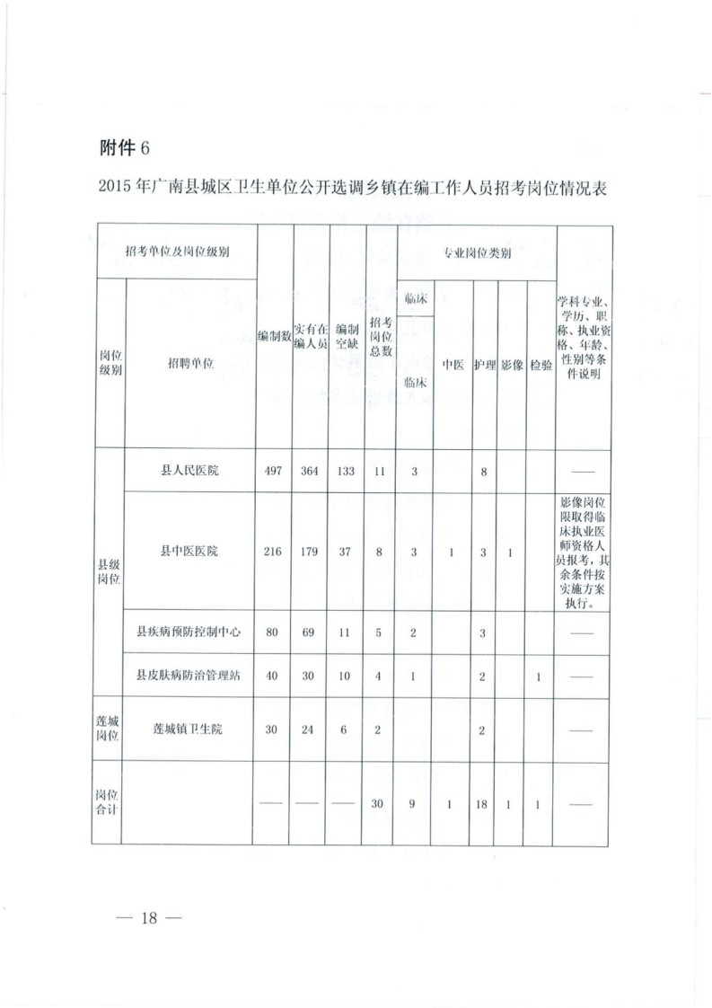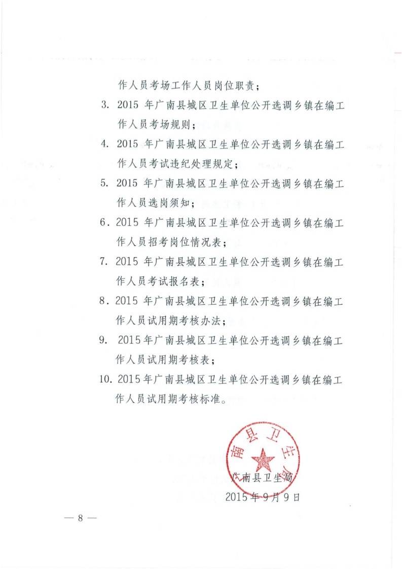 2015年廣南縣城區(qū)衛(wèi)生單位選調(diào)鄉(xiāng)鎮(zhèn)在編人員招考公告