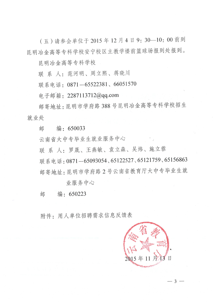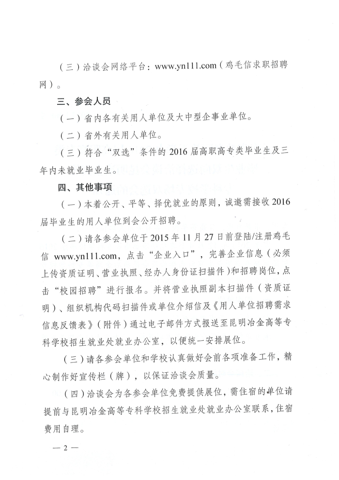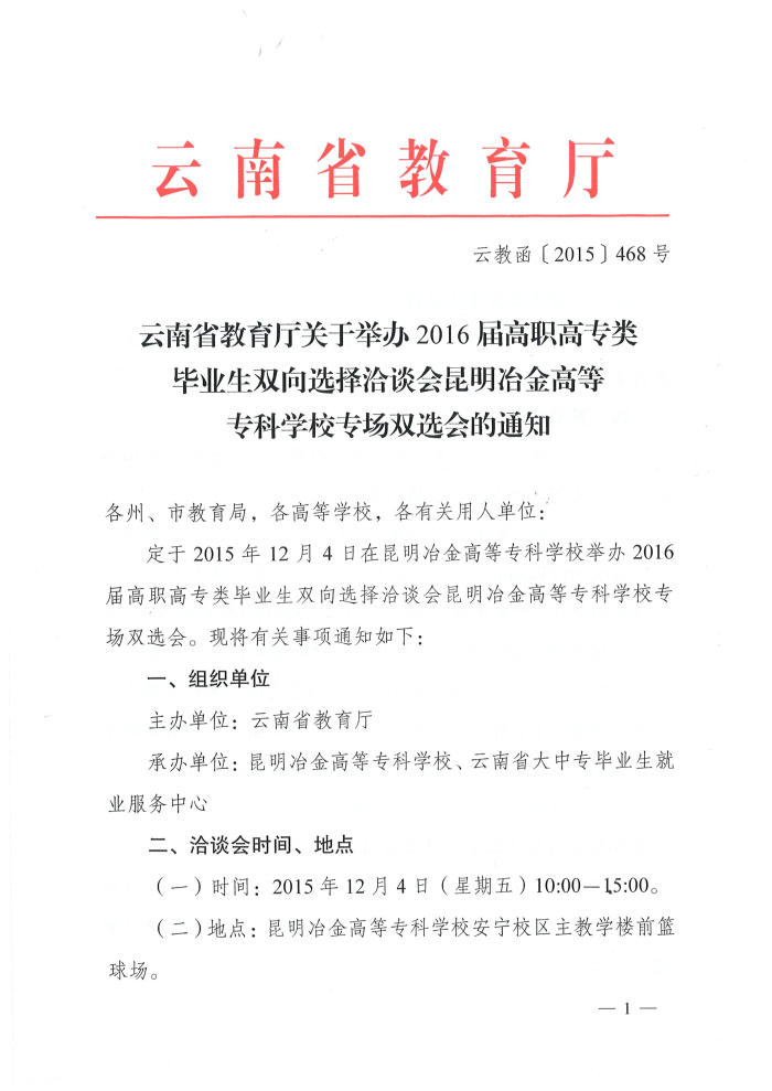 雙向選擇洽談會(huì)昆明冶金高等專科學(xué)校專場(chǎng)雙選會(huì)的通知