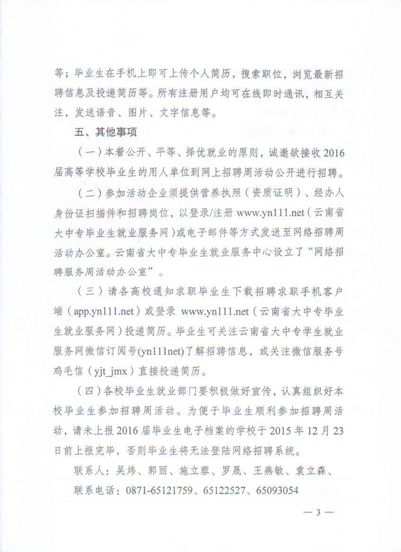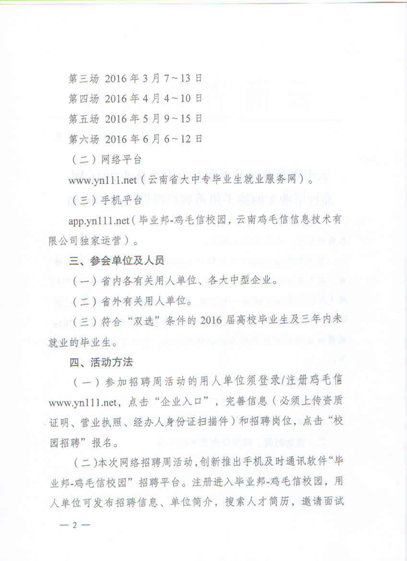 云南省2016屆高校畢業(yè)生網(wǎng)絡(luò)手機系列招聘周活動通知