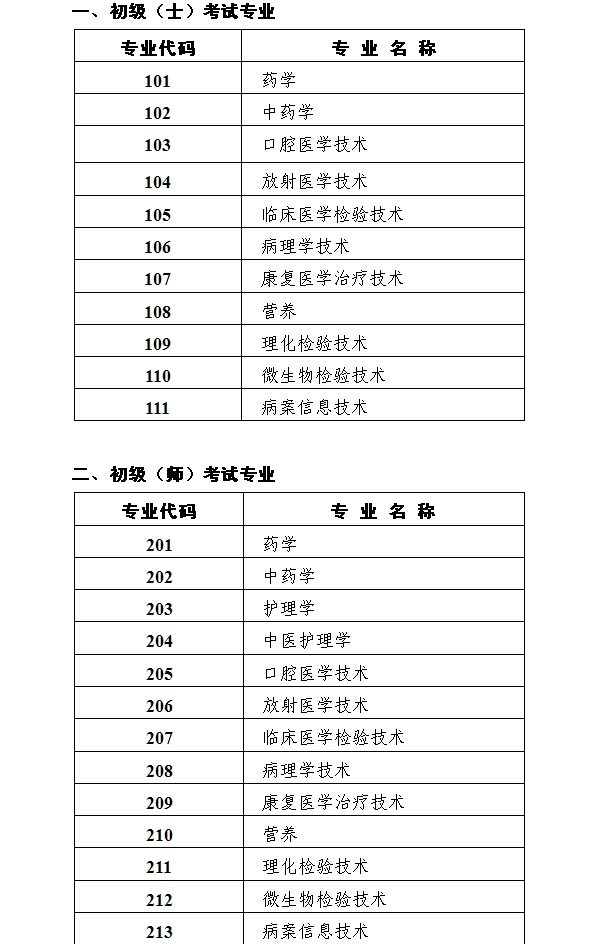 2016年衛(wèi)生專業(yè)技術(shù)資格考試專業(yè)目錄