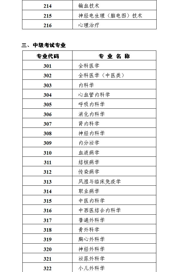 2016年衛(wèi)生專業(yè)技術(shù)資格考試主亞專業(yè)設置目錄(西醫(yī)類)