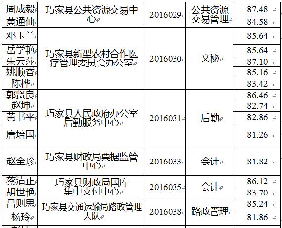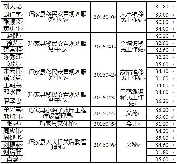 巧家縣2016年縣直機關(guān)事業(yè)單位公開選調(diào)工作人員面試工作已經(jīng)結(jié)束,應(yīng)參加面試人數(shù)76人,實際參加面試74人,缺考2人。現(xiàn)將面試成績及相關(guān)工作公告如下:
