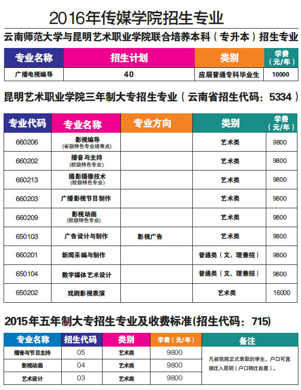 昆藝傳媒學(xué)院2016年招生簡章