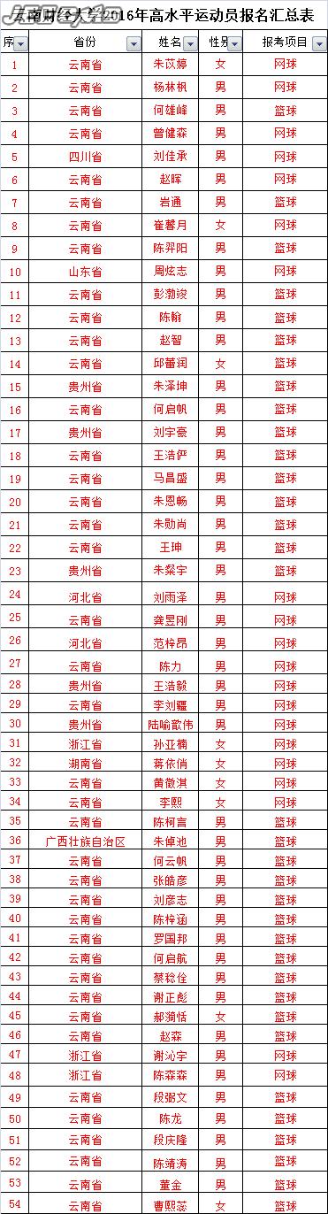 1、報(bào)名材料或手續(xù)不全考生,欠缺報(bào)名材料和手續(xù)無需重新郵寄,在3月4日下午14:30到云南財(cái)經(jīng)大學(xué)體育館會(huì)議室資格審查時(shí)一并提供;請(qǐng)考生務(wù)必帶齊身份證、運(yùn)動(dòng)員等級(jí)證書、近三年比賽獲獎(jiǎng)證書、比賽秩序冊(cè)、成績(jī)冊(cè)原件進(jìn)行查驗(yàn)。