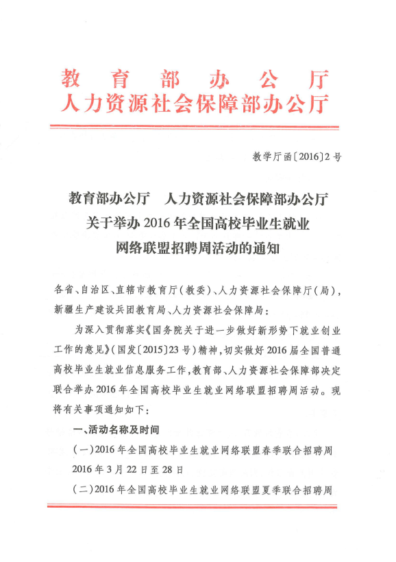 2016年全國高校畢業(yè)生就業(yè)網(wǎng)絡(luò)聯(lián)盟招聘周的通知