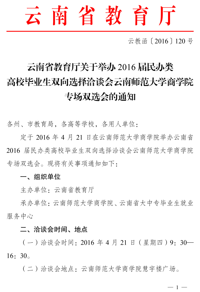 云南師范大學(xué)商學(xué)院專場雙選會的通知