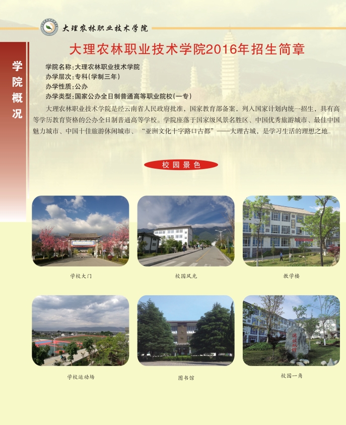 大理農(nóng)林職業(yè)技術(shù)學(xué)院2016年招生簡(jiǎn)章