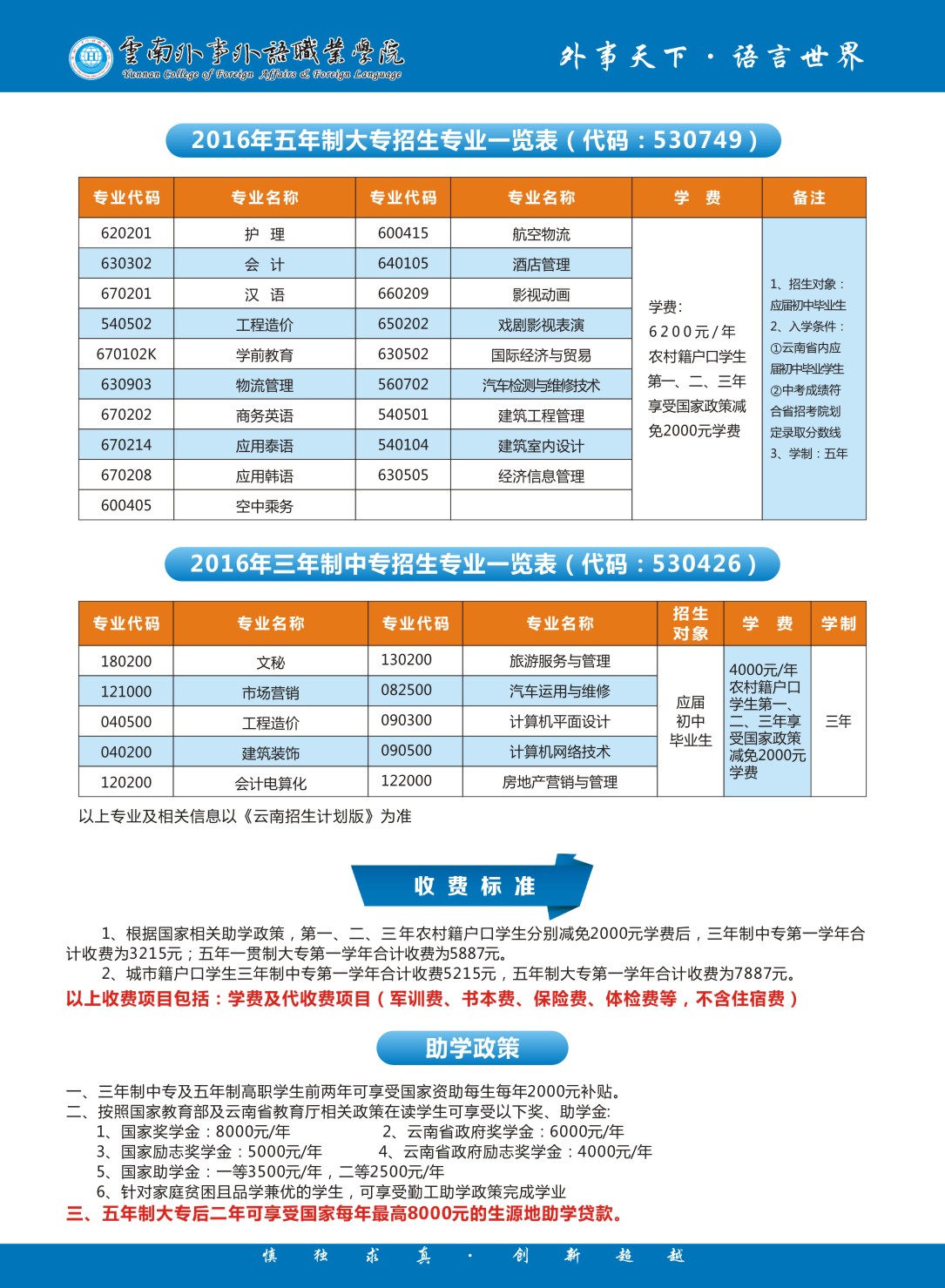 2016年云南外事外語職業(yè)學(xué)院中專及五年制大專招生簡章