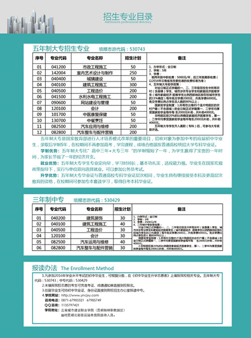 云南城市建設(shè)職業(yè)學(xué)院2016年五年制、中專招生簡(jiǎn)章