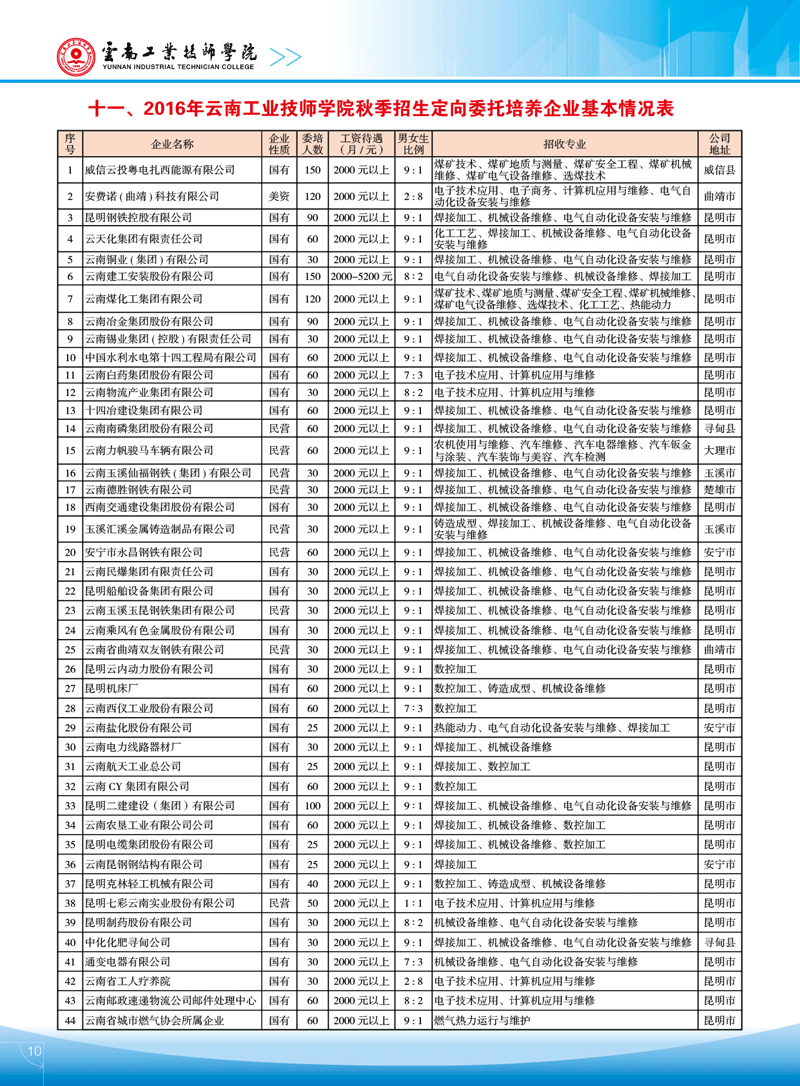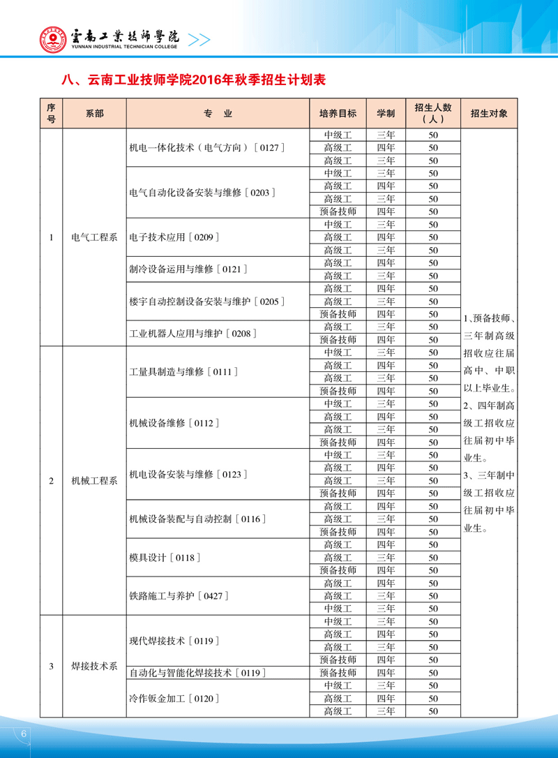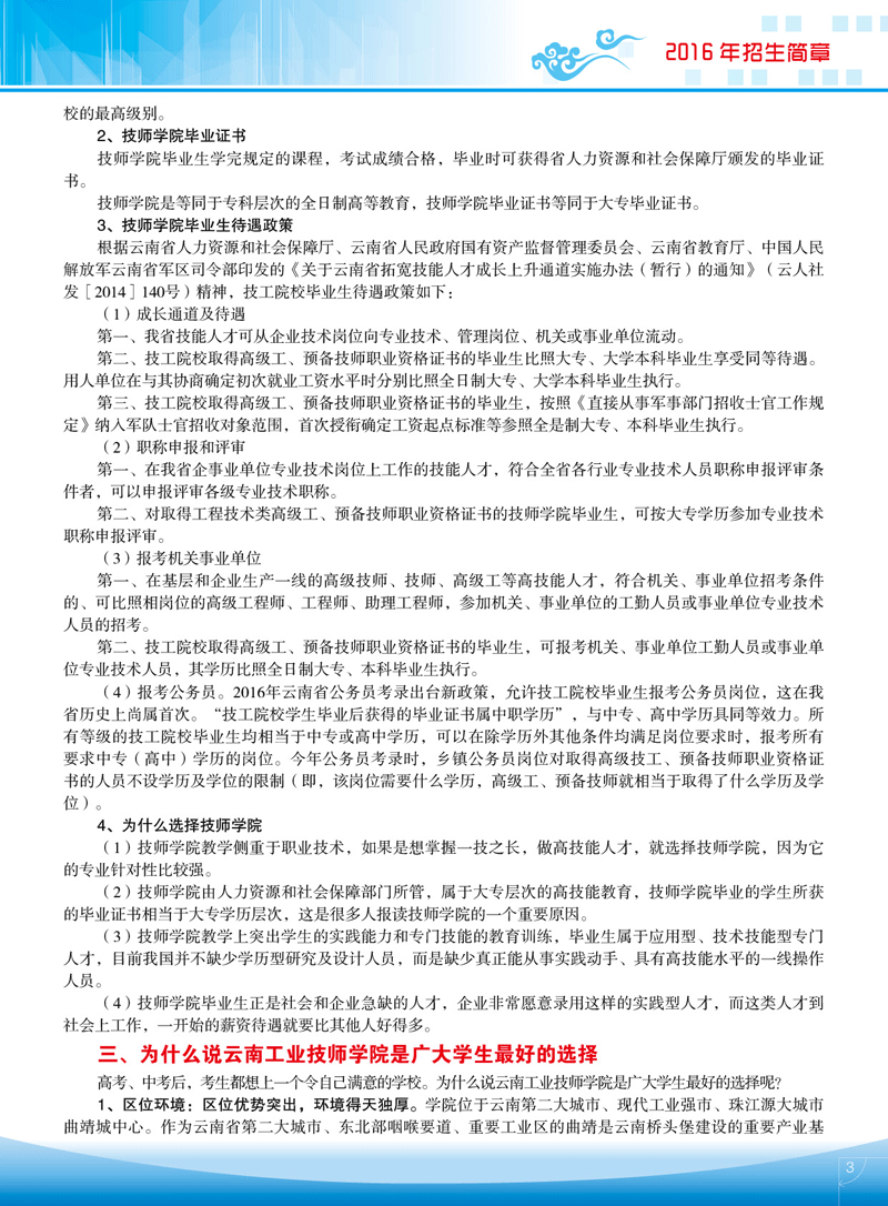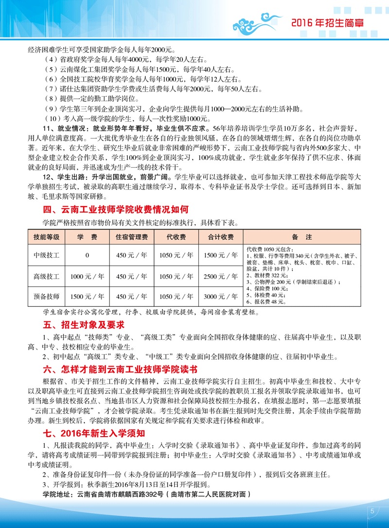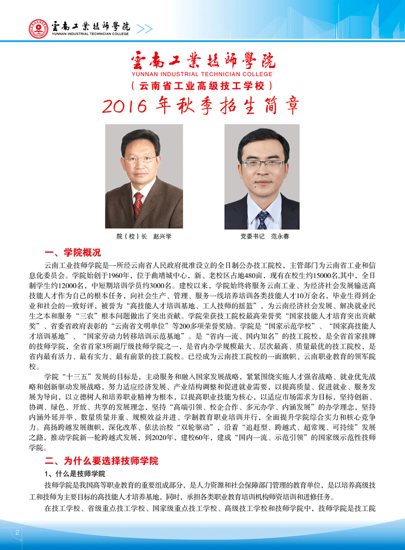 云南工業(yè)技師學(xué)院2016年秋季招生簡章