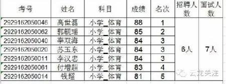 云龍縣2016年公開(kāi)招聘特崗教師參加面試人員名單
