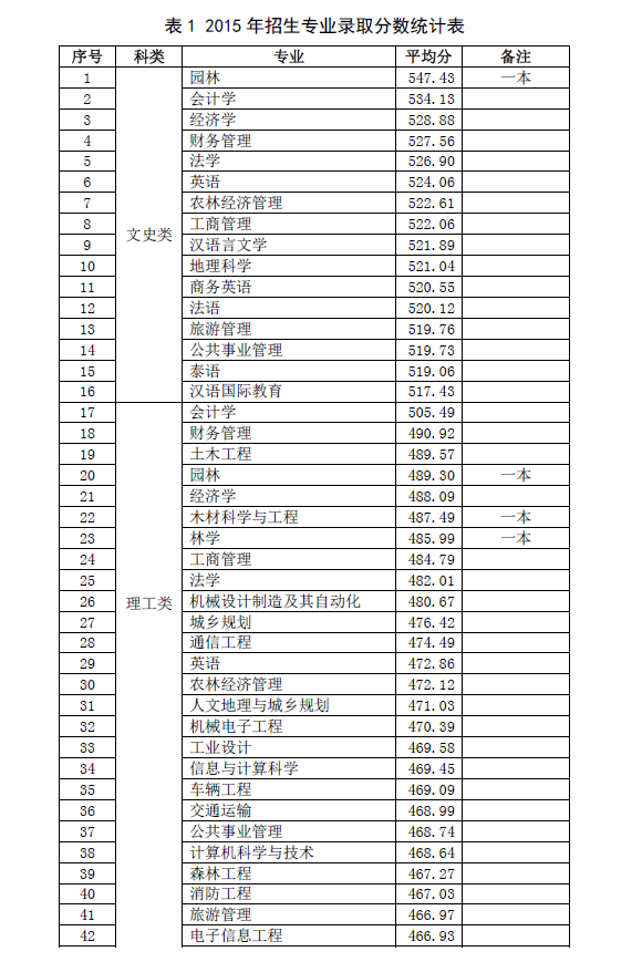 西南林業(yè)大學2015年本科專業(yè)錄取分數(shù)分析