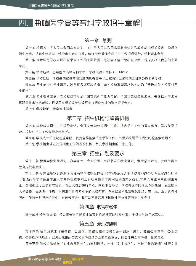 2016年曲靖醫(yī)學(xué)高等專科學(xué)校招生章程