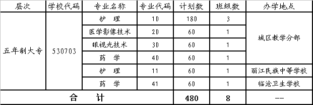 曲靖醫(yī)學(xué)高等專科學(xué)校2016年五年制大專招生計劃