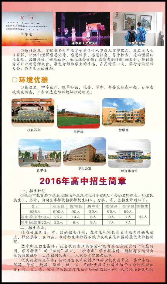 大理州永平縣第一中學(xué)2016年高一招生簡(jiǎn)章