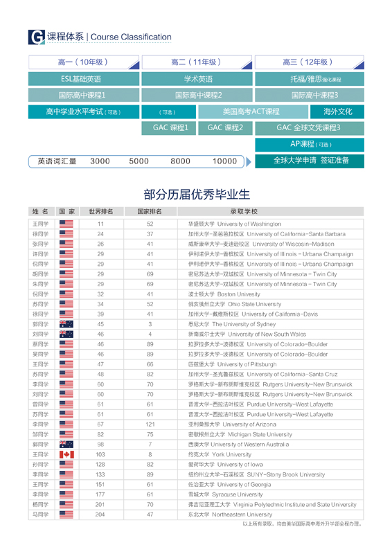 通過引進英美原版高中課程和教學模式,并由云南師大附中和跨國教育專家組成的中外教研團隊精心融合構(gòu)建了中外結(jié)合的階梯式課程體系,致力于培養(yǎng)學生完成從國內(nèi)中學課堂教育模式到海外大學自主性學習方式的平穩(wěn)過渡。
