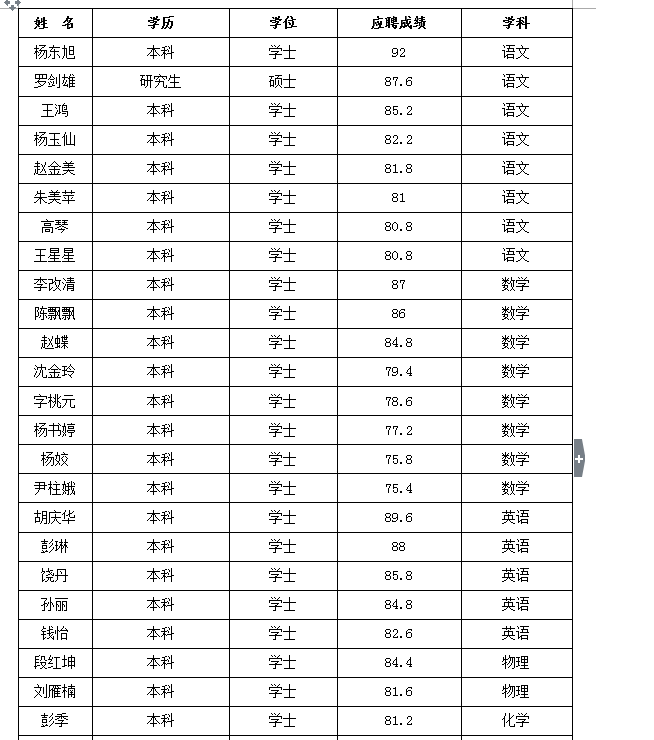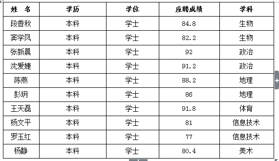 為滿足2016年學(xué)校教育教學(xué)工作的需要,提高教師隊伍的素質(zhì),優(yōu)化教師隊伍的結(jié)構(gòu),將“高學(xué)歷、高素質(zhì)、專業(yè)化”的優(yōu)秀人才充實到我校。根據(jù)相關(guān)規(guī)定和要求,楊東旭等34名高等院校畢業(yè)生通過對教育教學(xué)工作的認(rèn)識、語言表達能力、應(yīng)變能力、專業(yè)知識問答等綜合能力的考核,體檢合格,相關(guān)證件齊全,擬聘用楊東旭等34名同志為事業(yè)單位工作人員,現(xiàn)予以公示,公示期為7天(2016年7月28日至8月3日)。