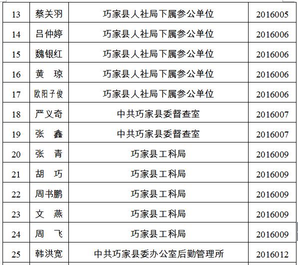 一、巧家縣2016年下半年縣直機(jī)關(guān)事業(yè)單位公開選調(diào)工作人員報名情況