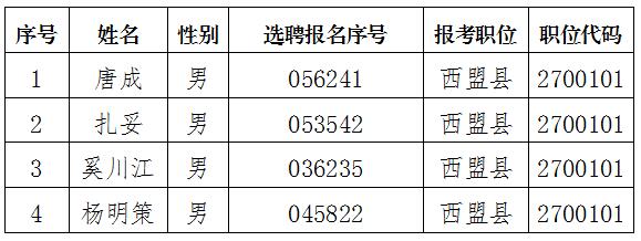根據(jù)中共普洱市委組織部普洱市人力資源和社會保障局《關(guān)于做好2016年普洱市大學(xué)生村官選聘面試工作的通知》(普組明電〔2016〕31號)有關(guān)規(guī)定,現(xiàn)將普洱市西盟縣2016年選聘大學(xué)生村官進入面試人員名單公示如下:
