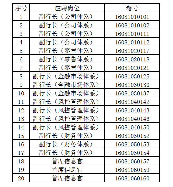 經(jīng)過2016年云南紅塔銀行高級管理人員筆試考試,面試名單現(xiàn)已確定,現(xiàn)將入圍面試的應(yīng)聘人員名單公示如下: