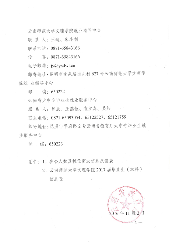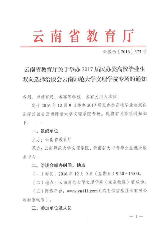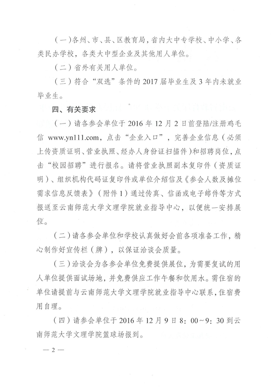 云南師范大學(xué)文理學(xué)院2017年民辦類畢業(yè)生專場招聘會通知