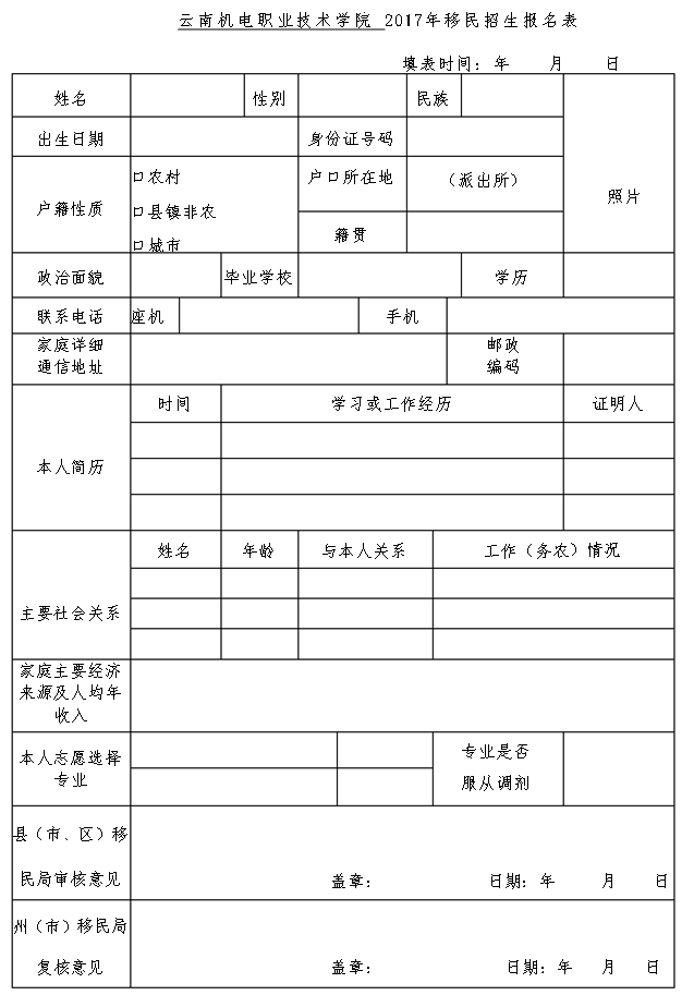 3、對(duì)錄取到我院的云南省范圍內(nèi)大中型水庫(kù)移民安置區(qū)的移民考生,由省財(cái)政廳、省移民局給予學(xué)費(fèi)和生活費(fèi)補(bǔ)助,每年每生8000元。此類考生報(bào)到前須如實(shí)填寫《移民學(xué)生招生報(bào)名表》(見附件2 一式三份),到生源所在地的縣(市、區(qū))移民局和州(市)移民局簽字蓋章,報(bào)到后交至學(xué)院招生辦公室。
