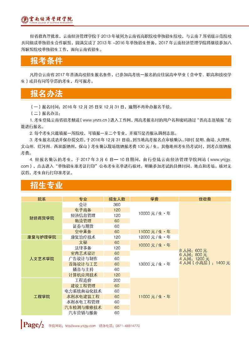 云南經(jīng)濟(jì)管理學(xué)院2017年單獨(dú)招生簡(jiǎn)章
