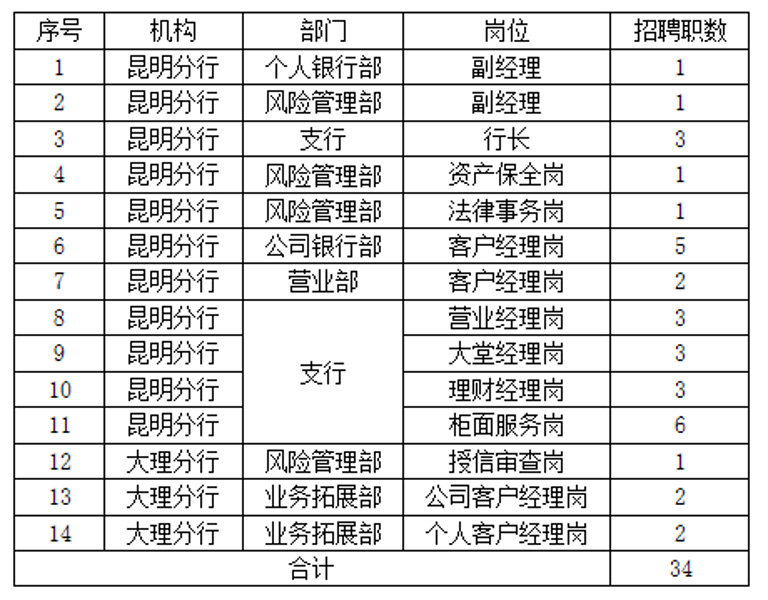 為滿足云南紅塔銀行昆明分行、大理分行業(yè)務(wù)拓展需要,現(xiàn)面向社會公開招聘各類專業(yè)人才若干名,誠邀有志于從事現(xiàn)代商業(yè)銀行金融服務(wù)工作、勇于接受挑戰(zhàn)、德才兼?zhèn)涞娜瞬偶用宋倚校诖c您攜手共筑職業(yè)平臺、共創(chuàng)美好未來、成就精彩人生!