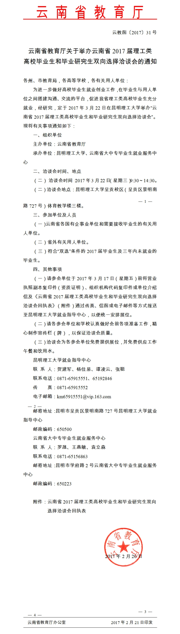 2017年昆明理工大學(xué)專場招聘會通知(理工類)