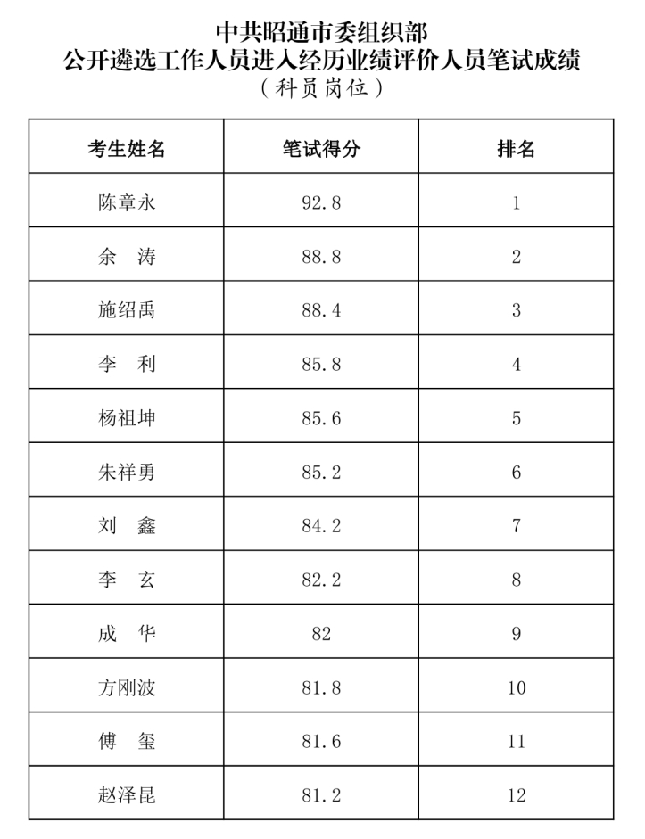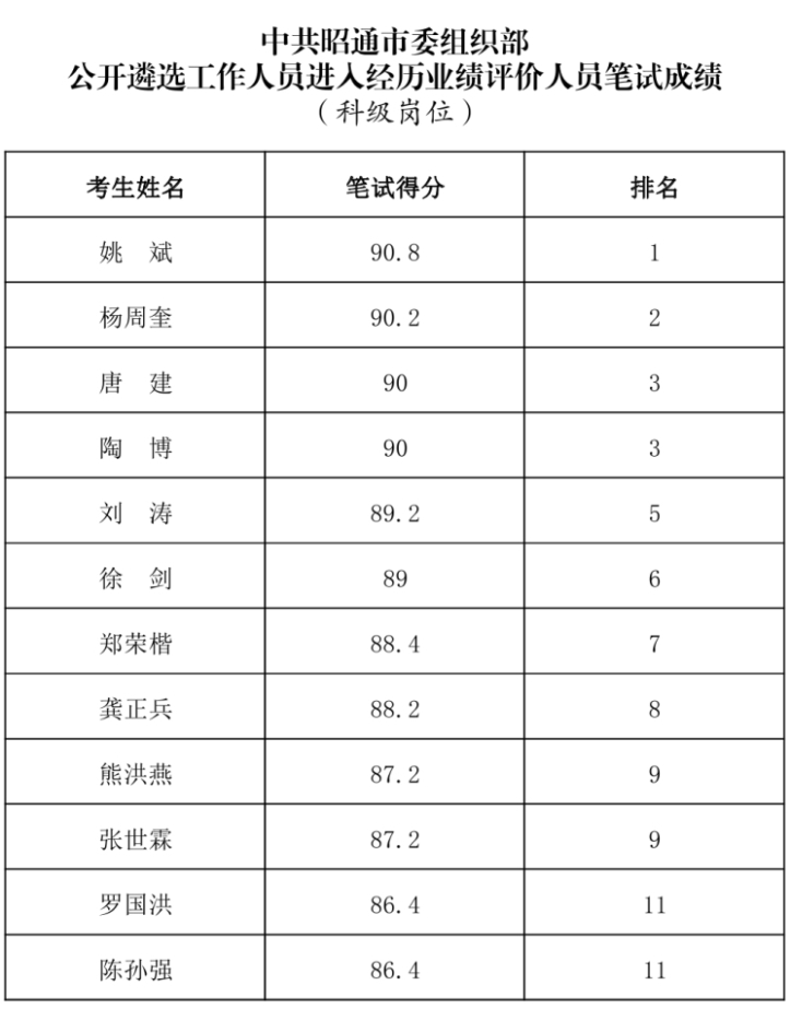 進(jìn)入經(jīng)歷業(yè)績評價(jià)人員筆試成績及相關(guān)事項(xiàng)公告