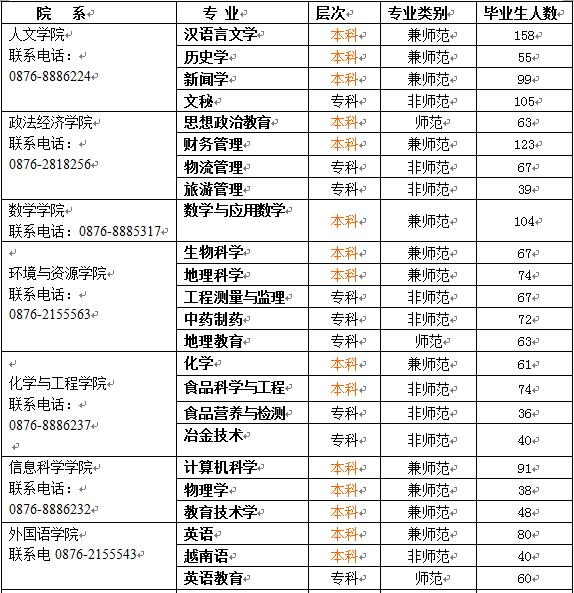 2017年,我校有本科24個(gè)專業(yè)、專科14個(gè)專業(yè)共2458名畢業(yè)生(附件1:文山學(xué)院2017屆畢業(yè)生專業(yè)情況簡(jiǎn)表)