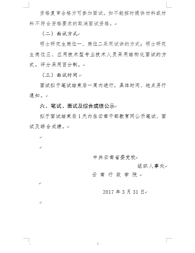 中共云南省委黨校、云南行政學院2017年招聘考試具體安排通知