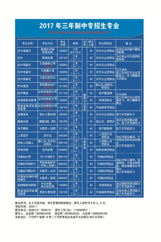 紅河財經(jīng)學(xué)校2017年招生簡章