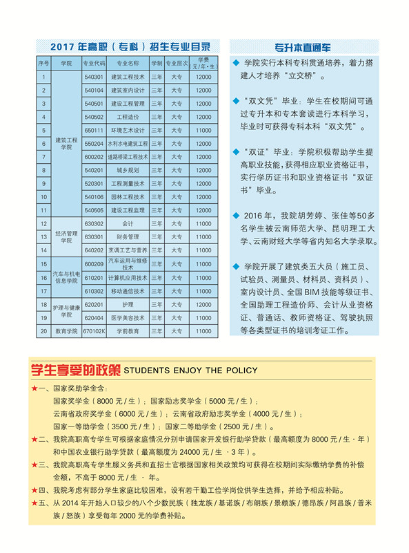 云南城市建設(shè)職業(yè)學(xué)院2017年招生高職(專科)簡(jiǎn)章
