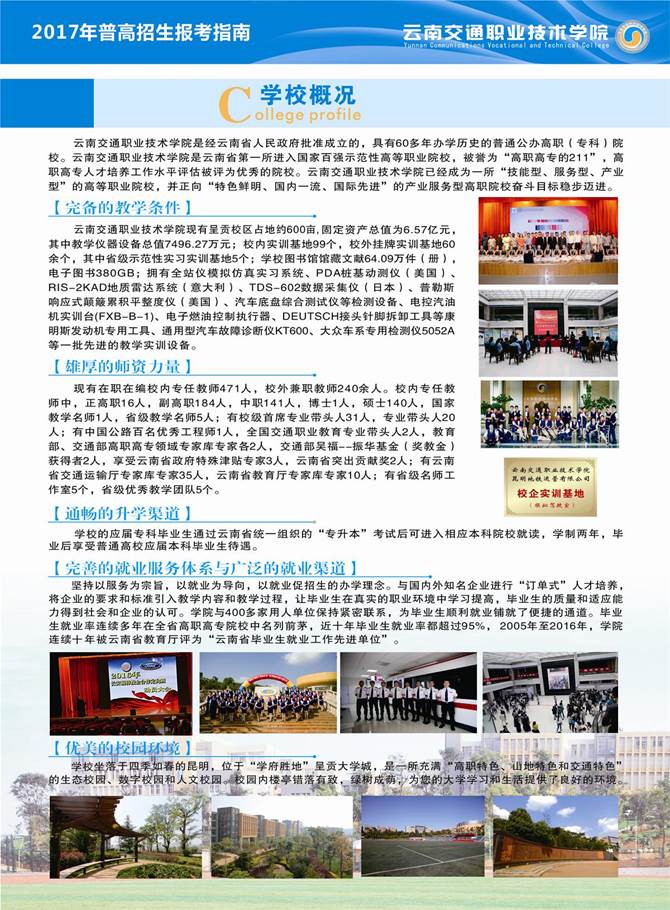 云南交通職業(yè)技術(shù)學(xué)院2017年招生報(bào)考指南