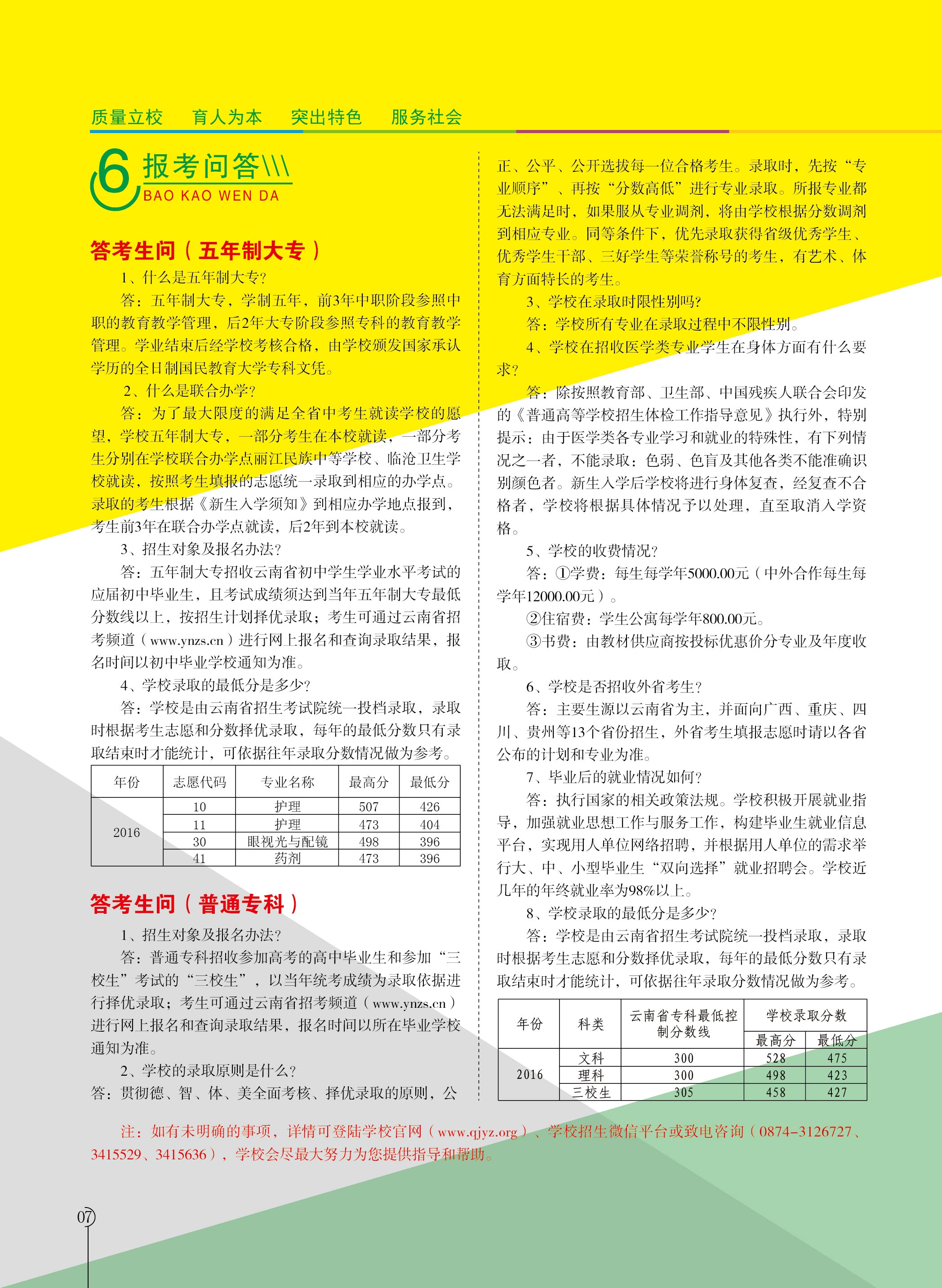 曲靖醫(yī)學(xué)高等專科學(xué)校2017年招生答考生問