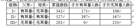 (4)在第Ⅰ組中的一對夫婦,第1個孩子無耳垂,該夫婦再生一個孩子無耳垂的幾率是 。