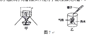 ① 圖7甲所示的是綠葉在光下制造有機(jī)物實(shí)驗(yàn)中的一個裝置,該裝置在本實(shí)驗(yàn)中的作用是 。