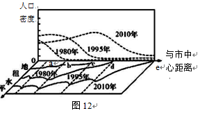 圖12為我國不同年份“某城市地租水平與人口密度變化示意圖”,讀圖回答第23~24小題。