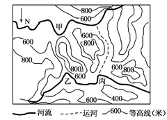 (2) 現(xiàn)擬在①、②、③、④四地中選址布局一個(gè)大型批發(fā)市場(chǎng),最佳選址是 地;從環(huán)境角度考慮,化學(xué)工業(yè)布局在甲處的合理性體現(xiàn)在 、 等。