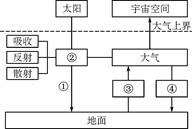 全球氣候變化引起國(guó)際社會(huì)的普遍關(guān)注,圖8為大氣受熱過(guò)程示意圖。讀圖回答第22~23小題。