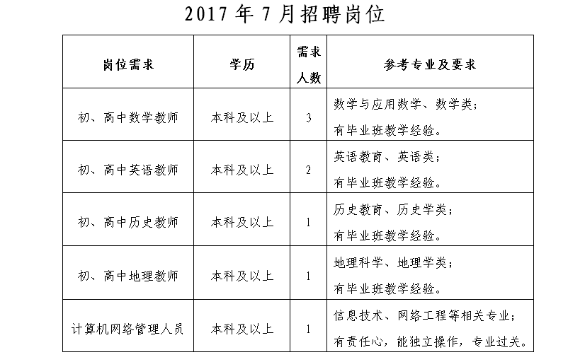 2.英語教師應(yīng)具備專業(yè)四級及以上資格;專業(yè)八級資格優(yōu)先考慮。