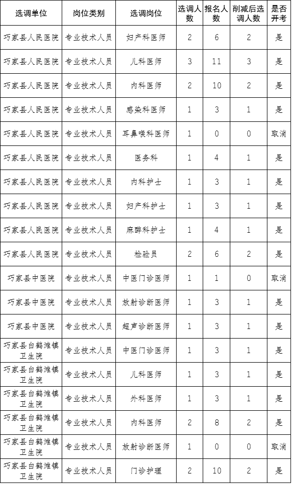 巧家縣2017年縣城規(guī)劃區(qū)內(nèi)醫(yī)院公開選調(diào)醫(yī)務(wù)人員崗位情況公示