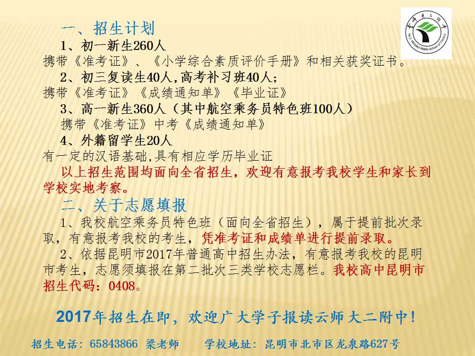 云南師范大學(xué)第二附屬中學(xué)2017年報考指南