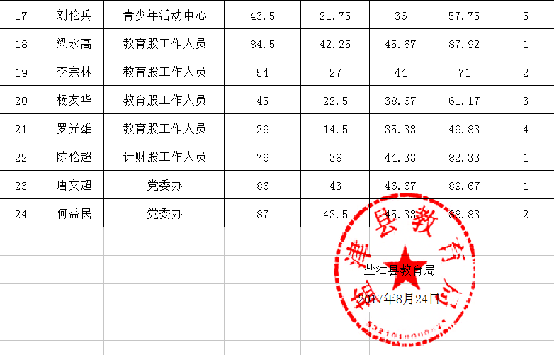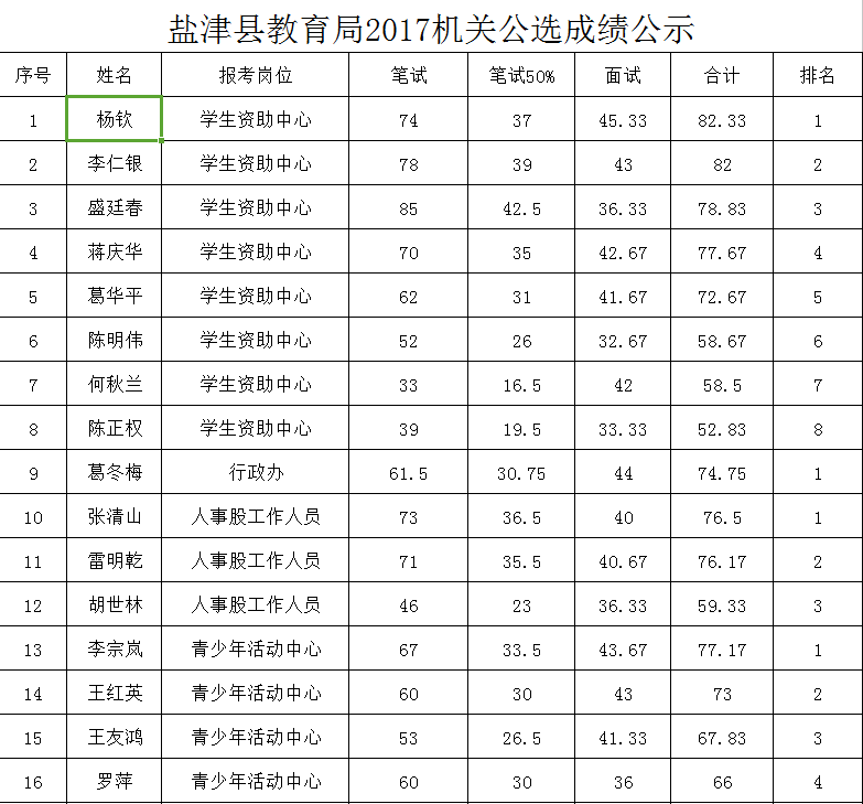 鹽津縣教育局2017機(jī)關(guān)公選成績(jī)公示