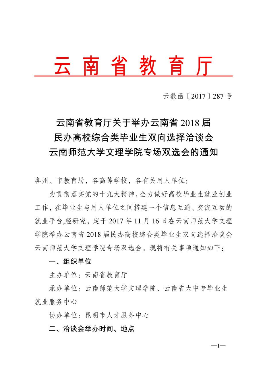 云南省教育廳關(guān)于舉辦云南省2018屆民辦高校綜合類畢業(yè)生雙向選擇洽談會
