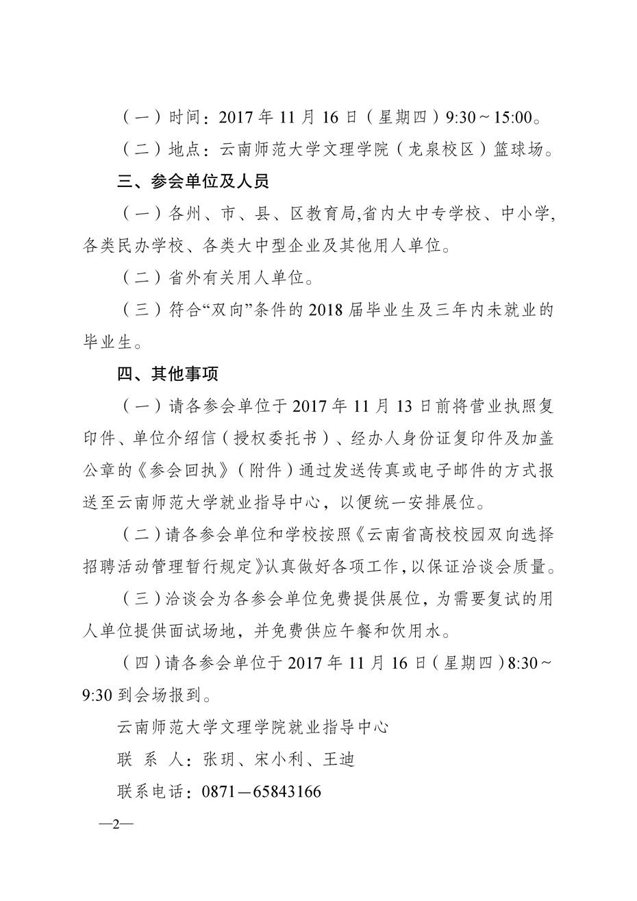 云南師范大學(xué)文理學(xué)院專場雙選會的通知